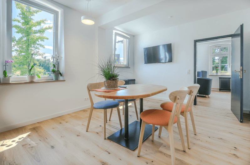 mit hochwertigen Vollholzmöbeln ausgestattet, lädt es zu