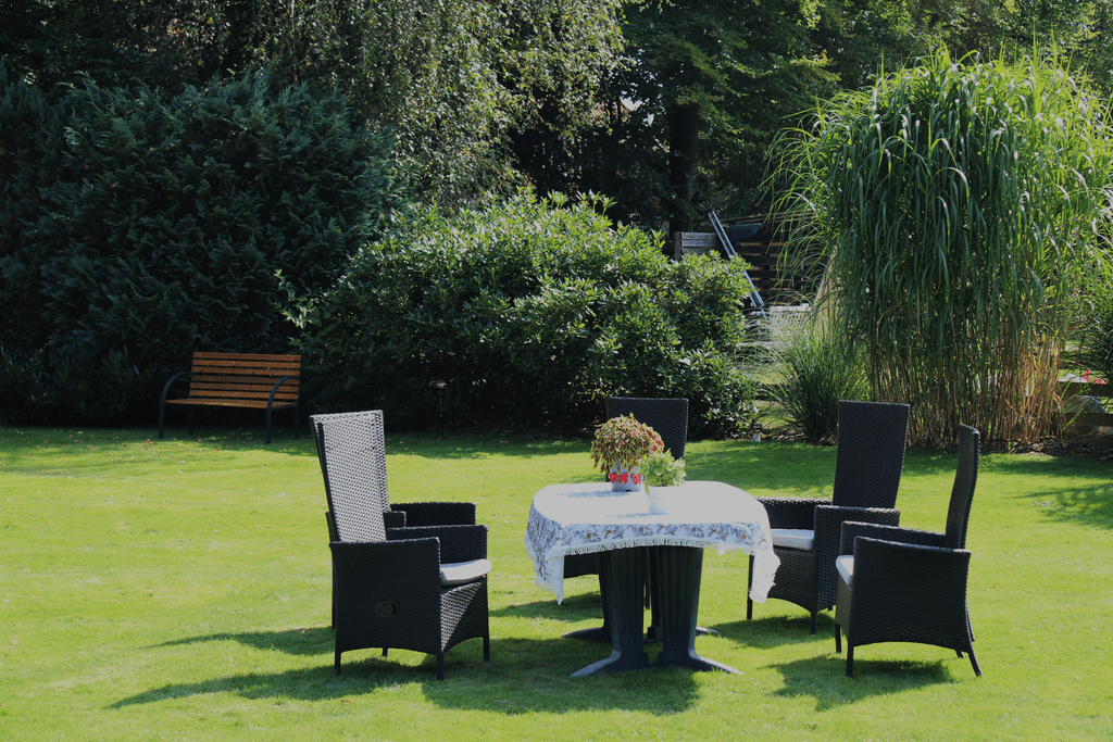 - Sitzgelegenheiten zum entspannen im idyllischen Gartenbereich