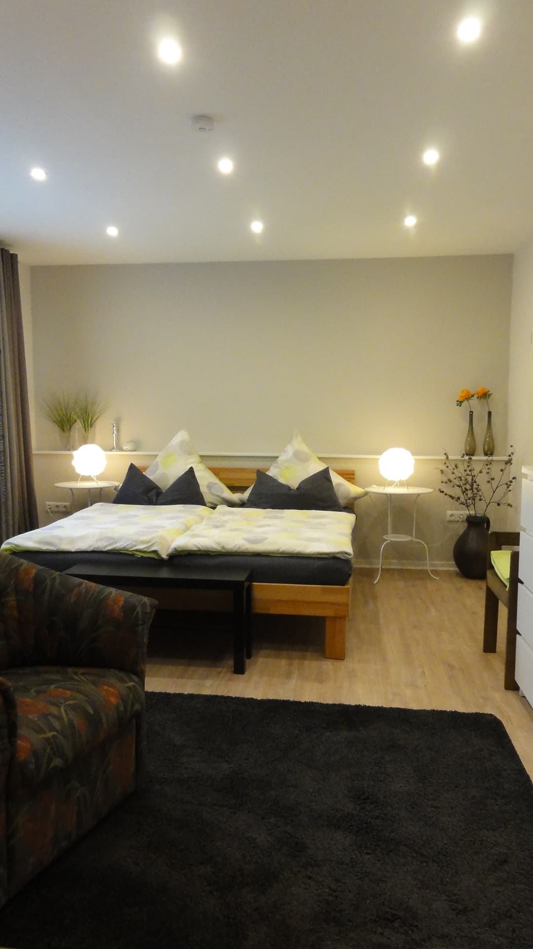 Das „Pausendomizil“ ist eine besondere Ferienwohnung für Genießer und Familien. In ruhiger und doch zentrumsnaher Lage bietet sie auf 125 m² Platz für bis zu 6 Personen. Neben dem großen Wohnzimmer finden die Gäste eine Wohn-Essdiele, 2 Schlafzimmer, Bad/ WC, Dusche/WC, Küche, TV, W-LAN, überdachte Terrasse und Garten mit Sonnenliegen.