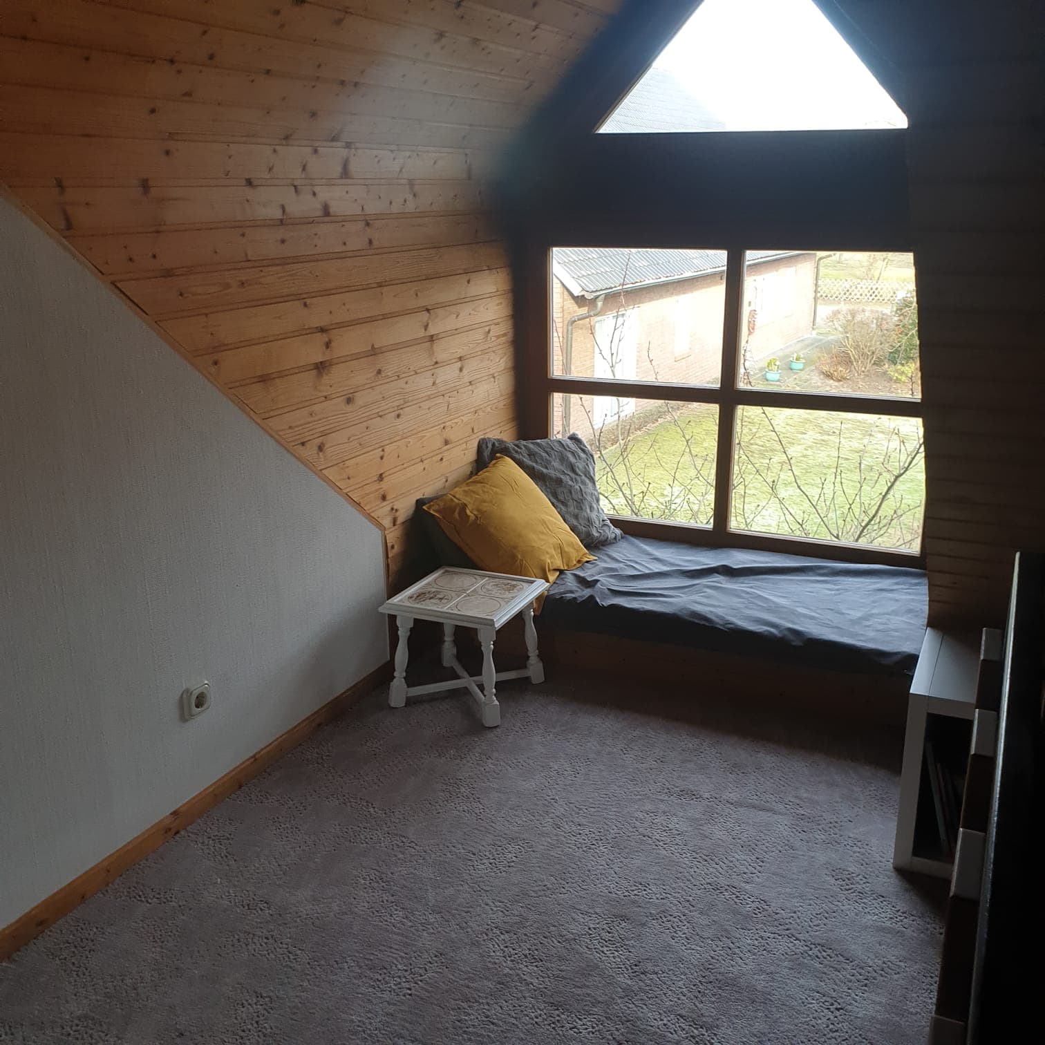 Wir bieten eine hübsche Doppelhaushälfte in einem Fachwerkhaus mit liebevoller Einrichtung aus neu und alt.