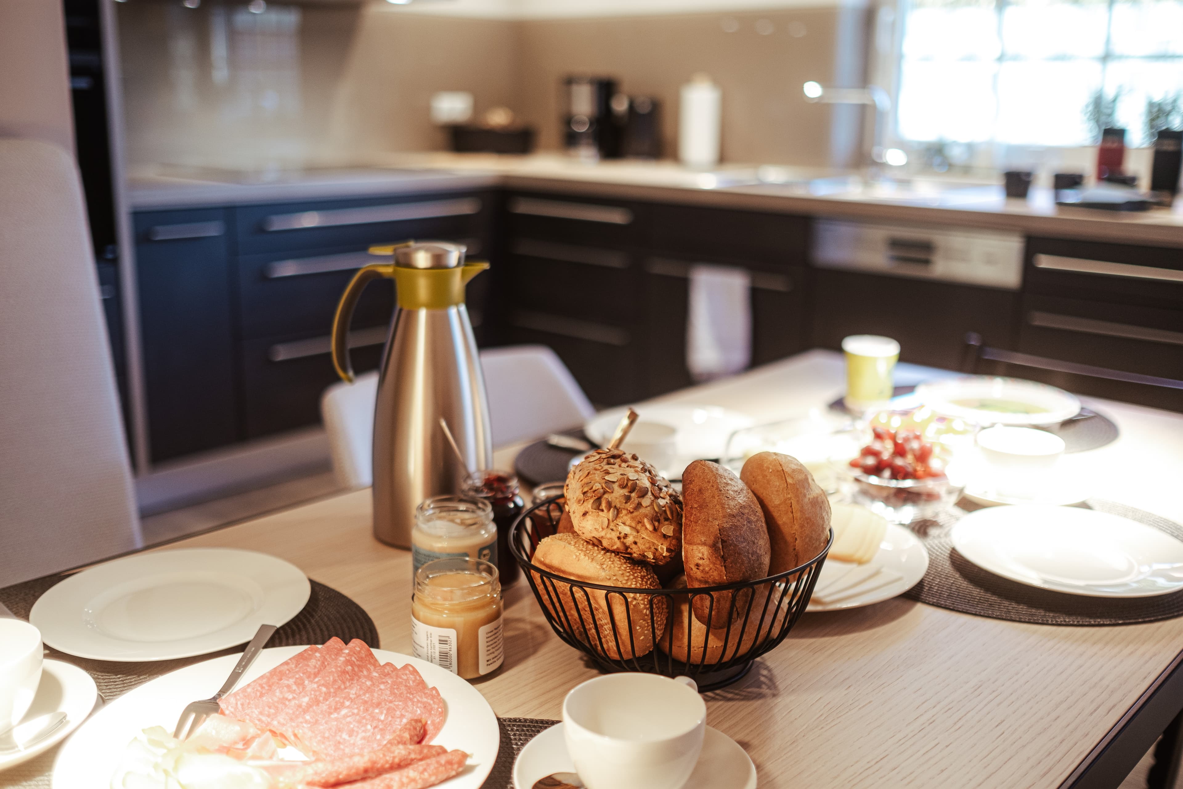 Den Tag könnt Ihr entspannt beim ersten Kaffee oder Tee auf der Frühstücksterrasse an der Küche starten und dabei die ersten Sonnenstrahlen und die morgendliche frische Luft genießen. Ihr könnt hier natürlich auch ausgiebig gemeinsam frühstücken.