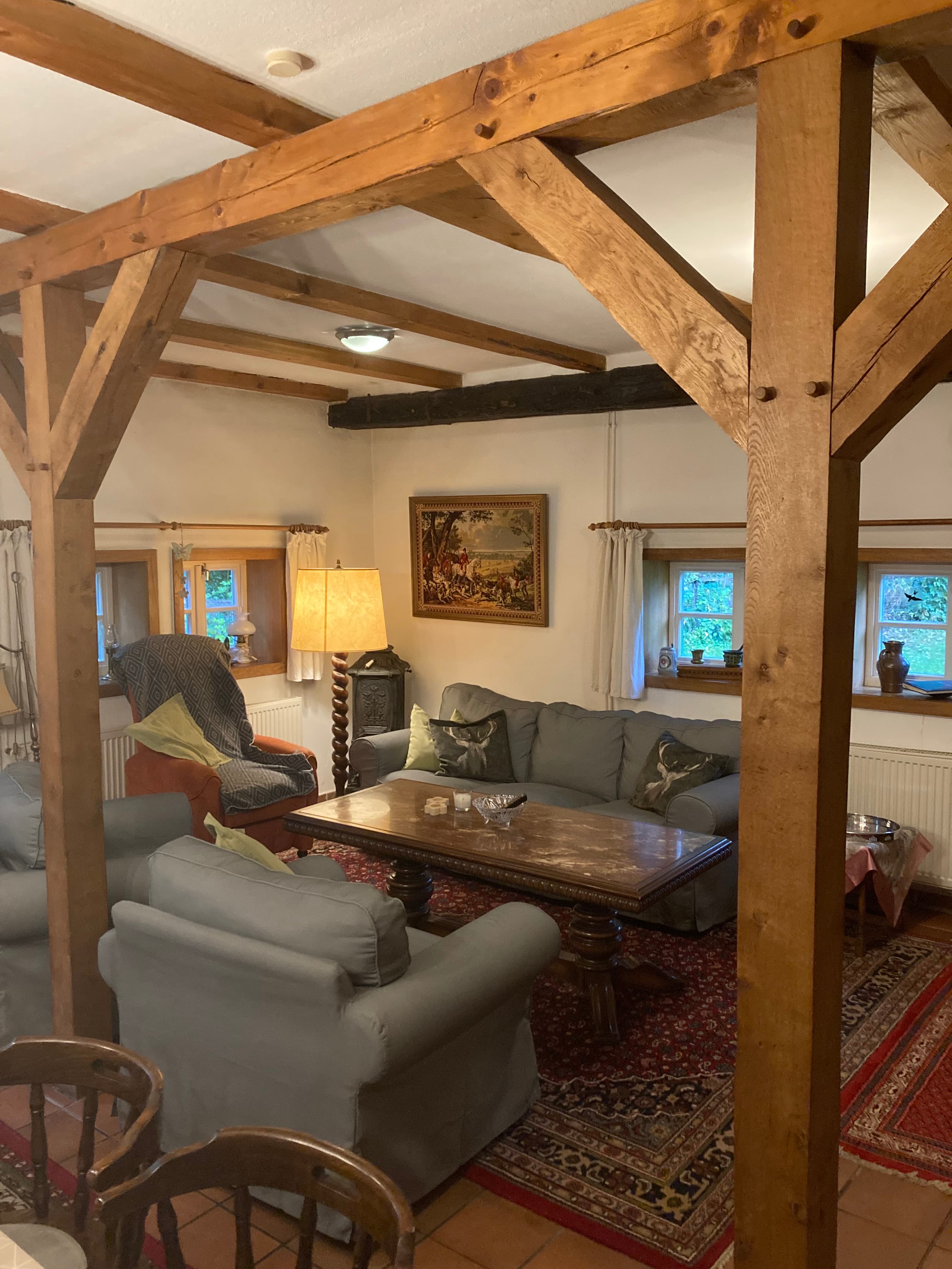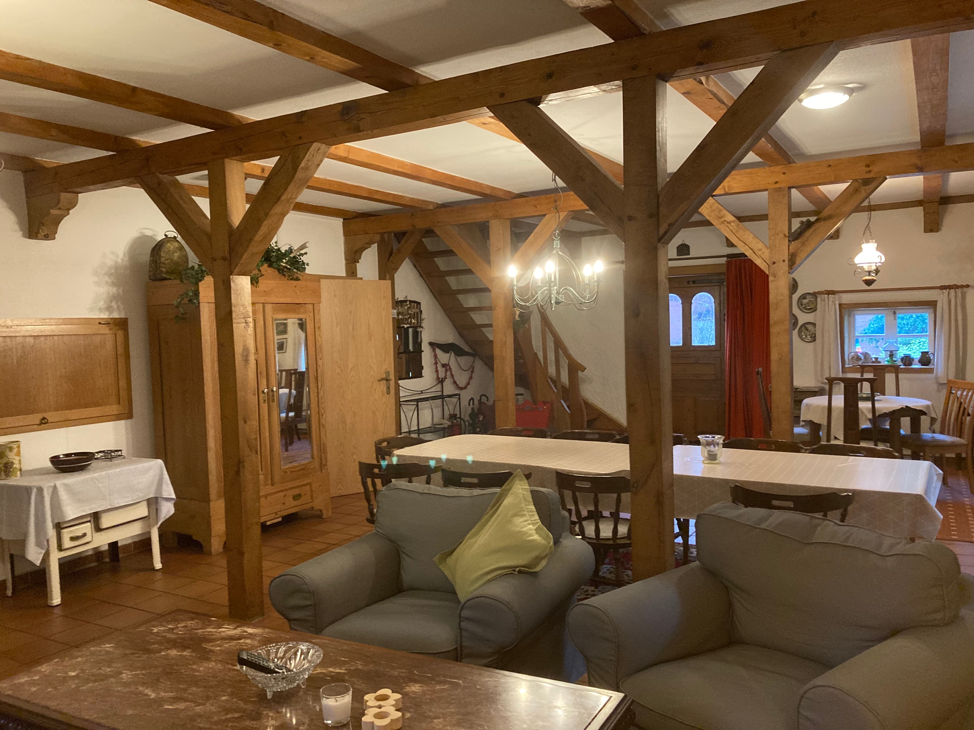 Verbringen Sie Ihren Urlaub in einer unserer gemütlich eingerichteten Ferienwohnungen und/oder in unserem Ferienhaus mit Sitzecken und Außenkamin. Reitgruppen finden bei uns ausreichend Platz.