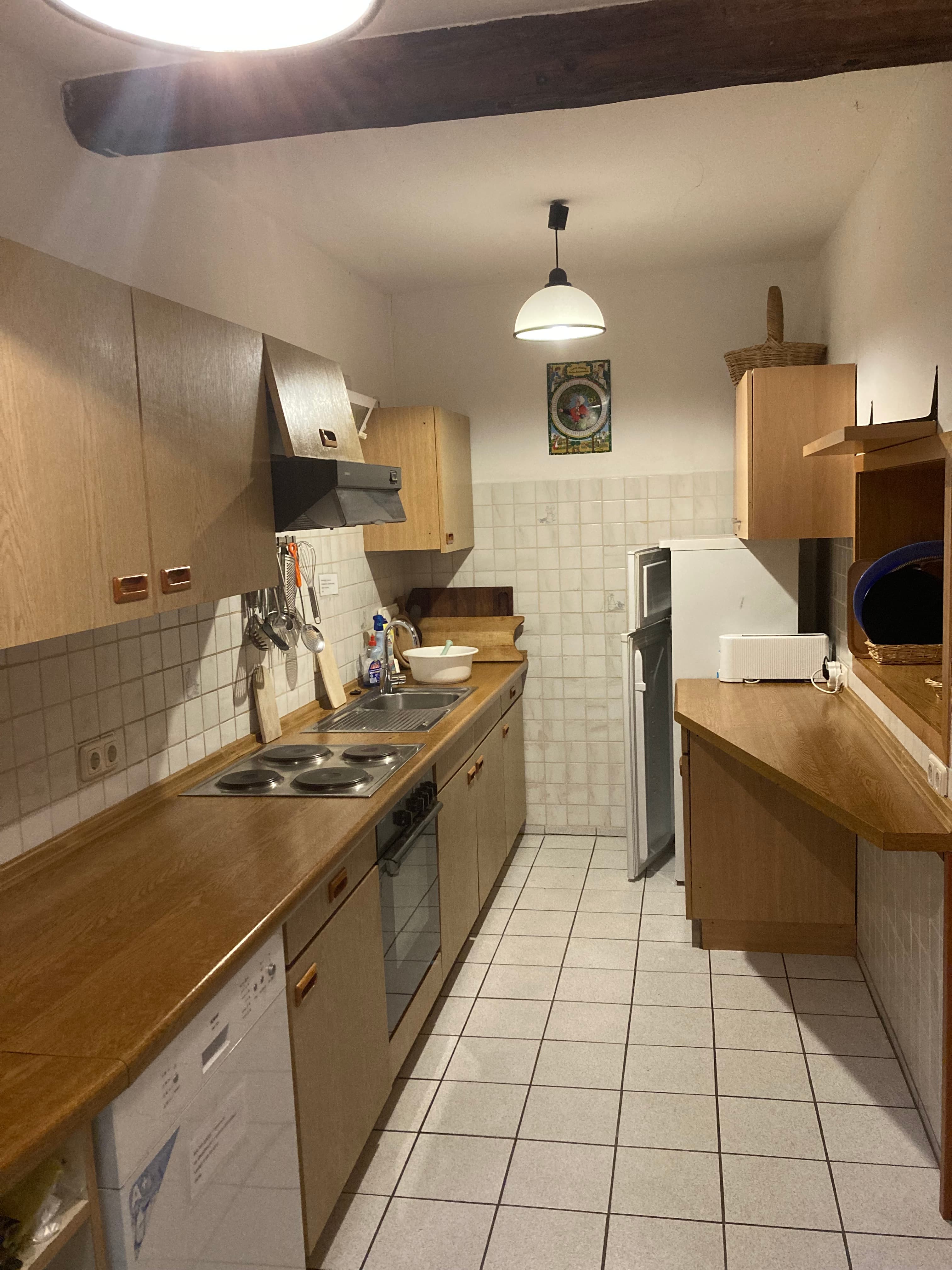 Die Ferienwohnungen sind mit separaten Küchen ausgestattet. Das Ferienhaus mit einer Kochnische.