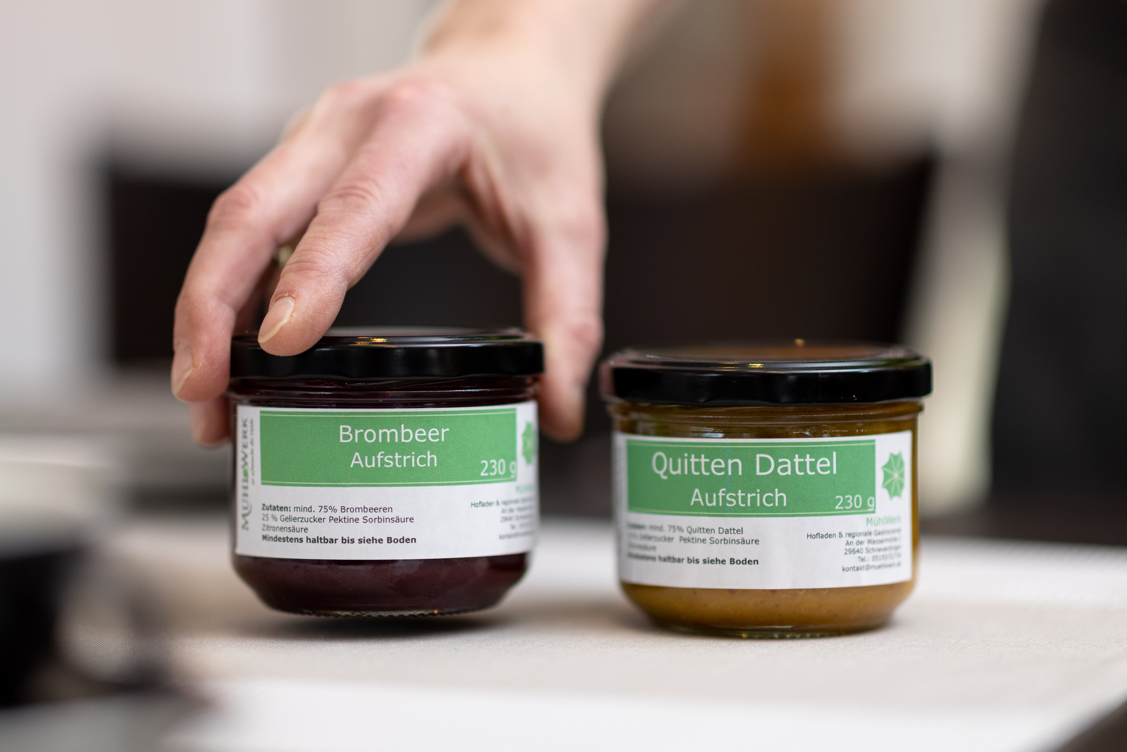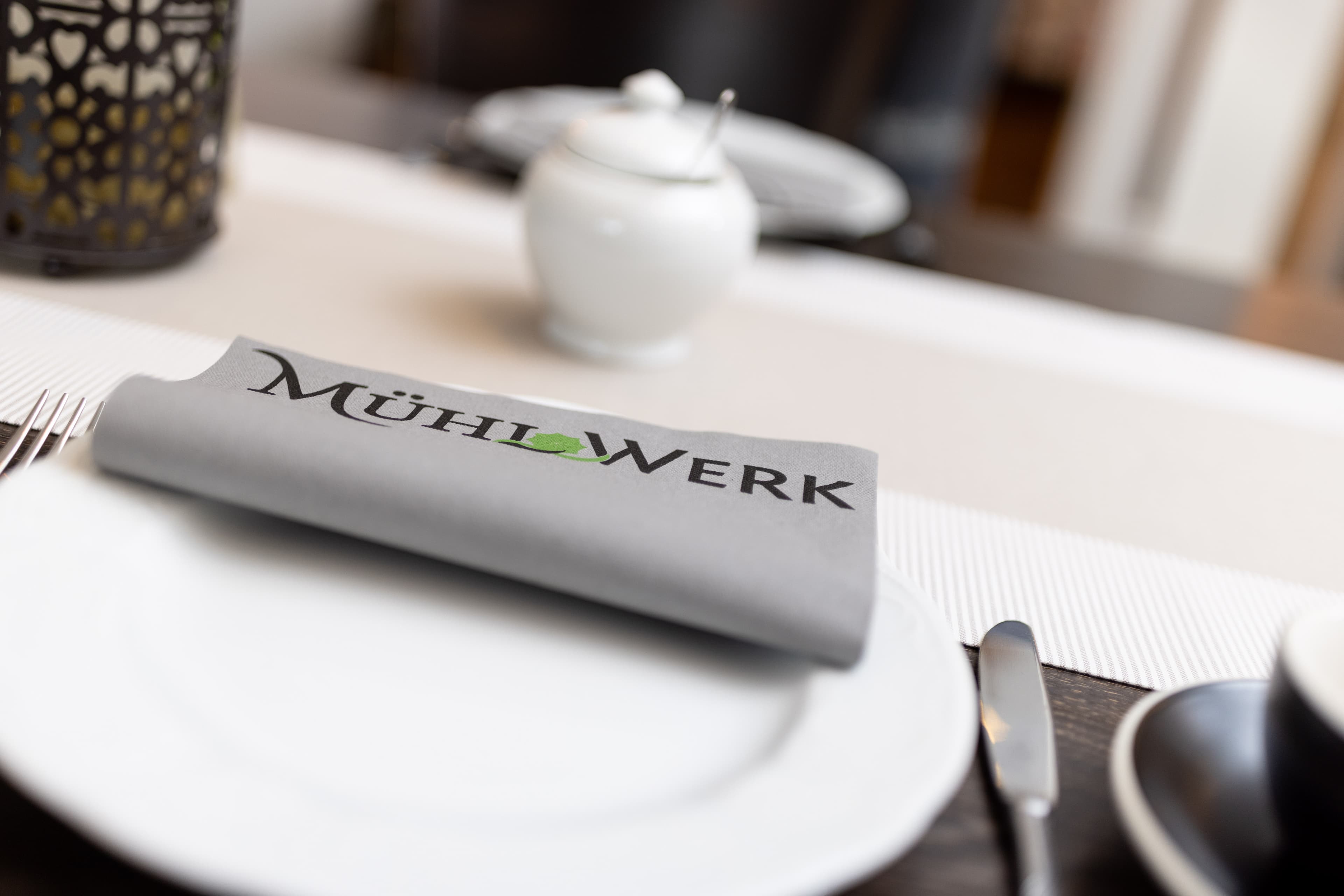 Täglich ein einladendes Frühstücksbuffet mit hausgemachten Marmeladen, Käse, Aufschnitt und allem, was das Herz begehrt im MühlWerk Hofladen und Restaurant. Das MühlWerk ist etwa 800 m entfernt und zu Fuß, mit dem Leihfahrrad, Auto oder bei Bedarf auch per Shuttleservice zu erreichen.