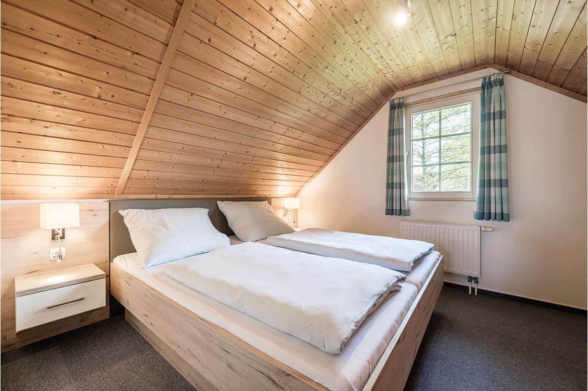 Jeweils separate Schlafzimmer, Kinderzimmer in den 6- und 8-Personen-Häusern mit Etagenbett. In den 4-Personen-Häusern getrennt stehende Betten, die auch für Erwachsene geeignet sind.