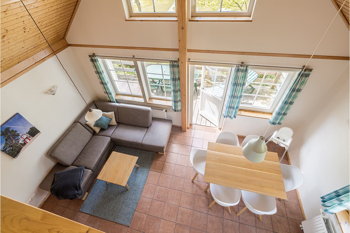 Jedes der gemütlichen Holzhäuser bietet Ihnen eine Terrasse, einen komfortablen Wohnraum mit Küche, ein Bad, 2 bis 4 Schlafzimmer und sind komplett ausgestattet. 4- und 6-Personen-Häuser bieten Ihnen weiterhin eine offene Galerie.