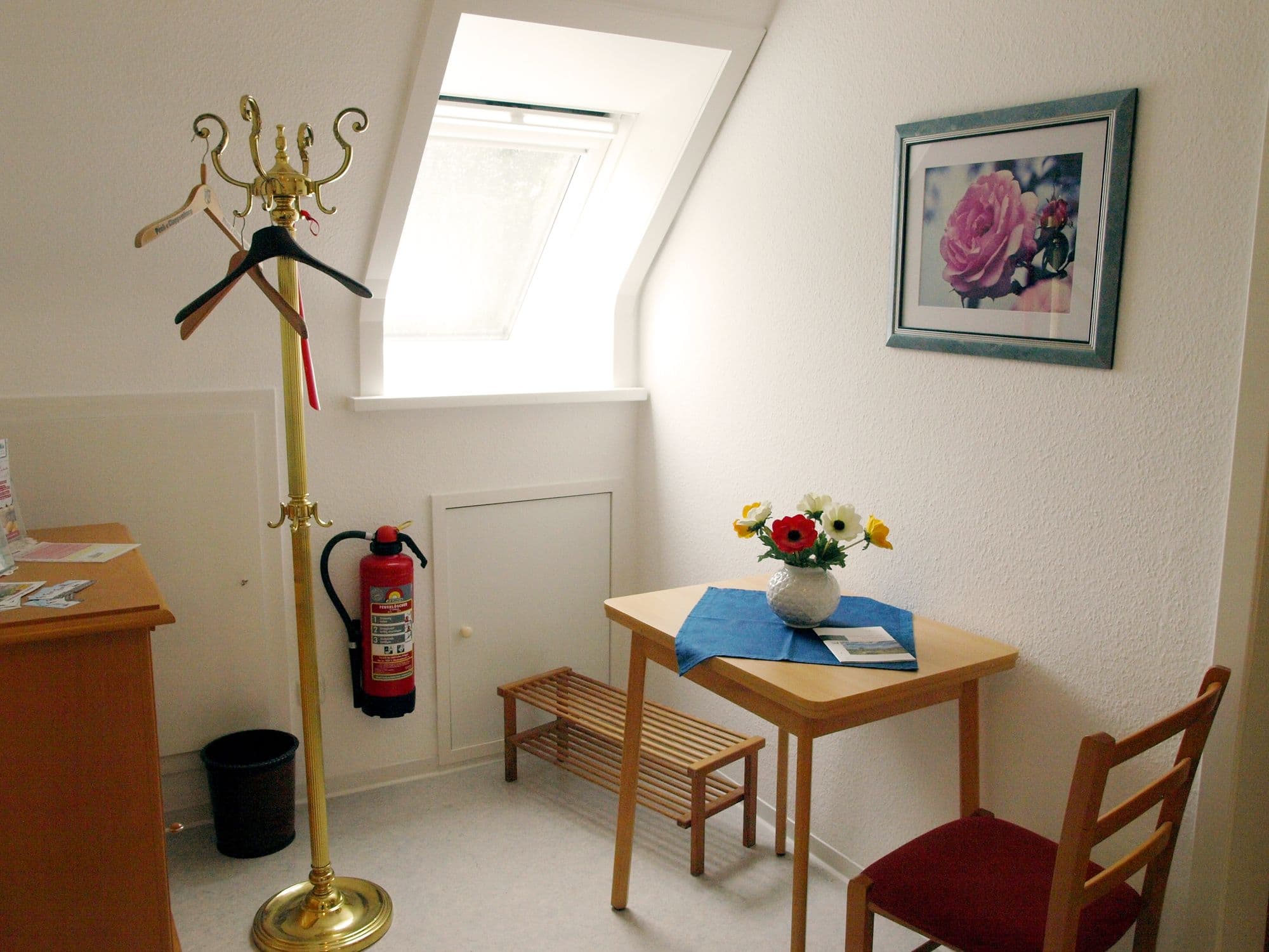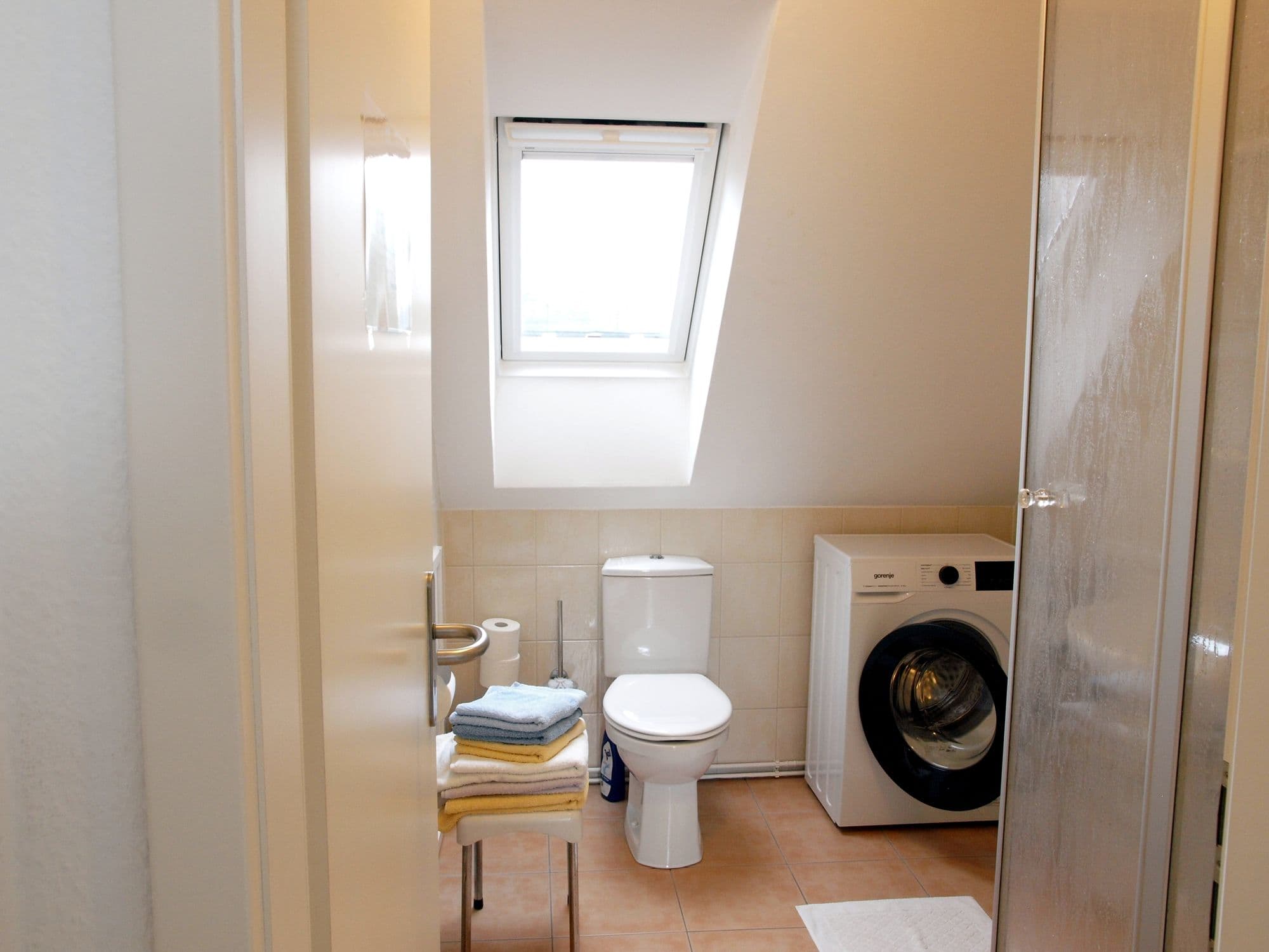 Wann Sie sich unter die Dusche (der Norddeutsche sagt auch Schauer dazu) stellen möchten, sei ganz allein Ihnen überlassen. Das warme Wasser dafür kommt aus einer modernen Solaranlage. Neben dem WC befindet sich im Bad auch eine Waschmaschine (nur auf Anfrage!)