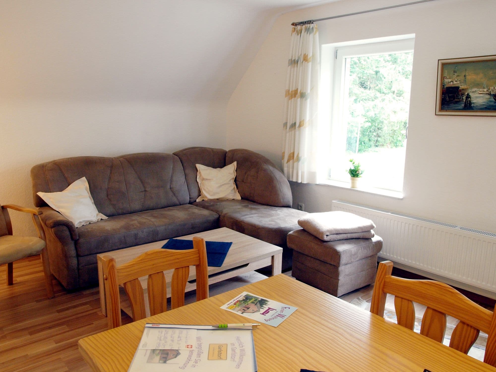 - Wohnzimmer mit Sat-TV, ausziehbare Schlafcouch und Esstisch für 4 Personen
