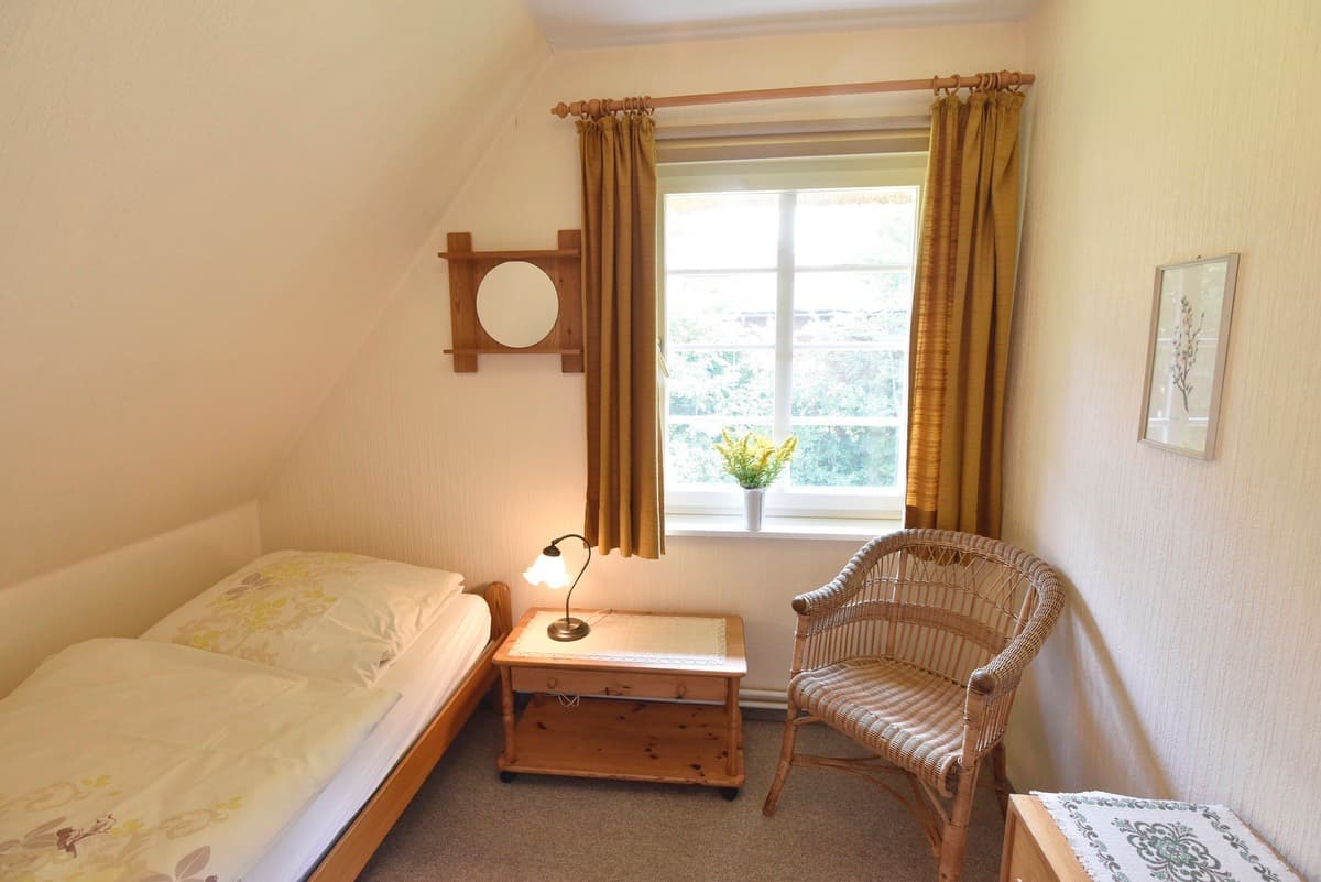 Das Ferienhaus unter Reet befindet sich im ruhigen, zur Rückseite unseres Hofes gelegenen Hauskoppelweg.