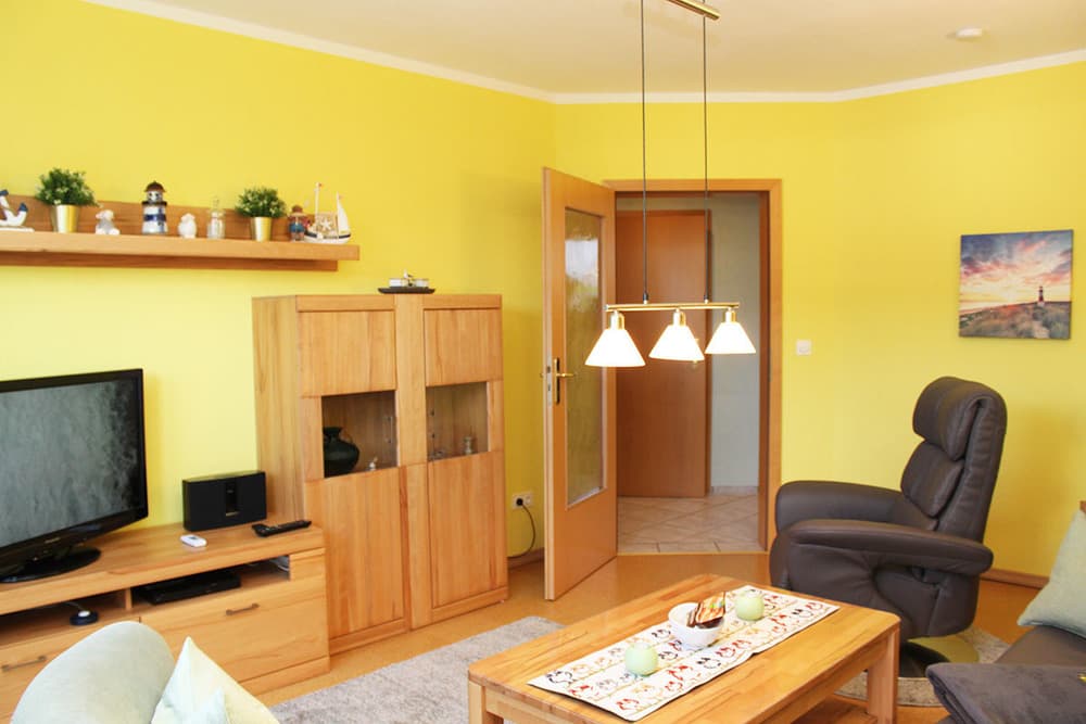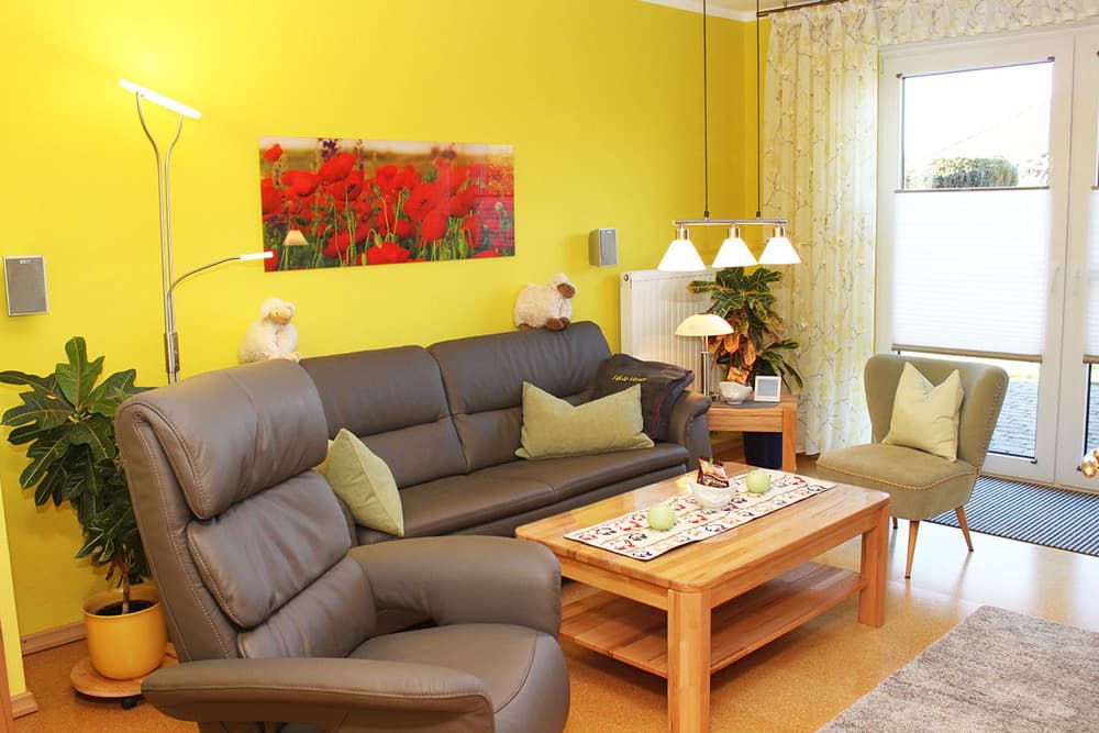 gemütliche Wohnzimmer mit direktem Terrassenzugang zur Verfügung.