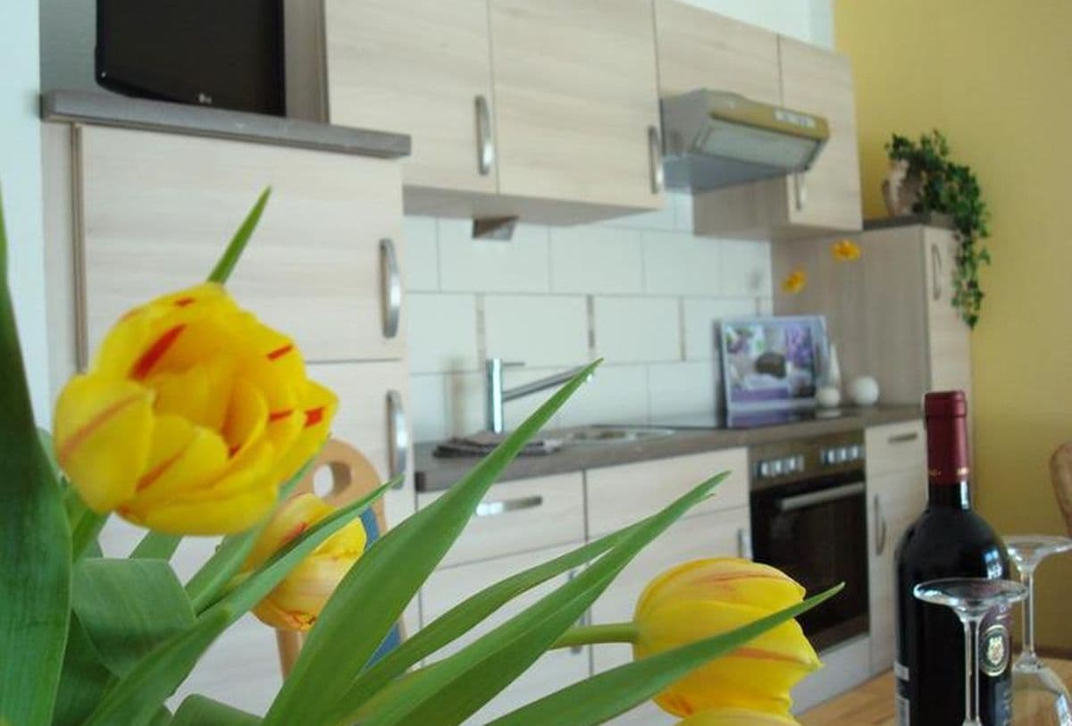 In dem Essbereich befindet sich eine vollausgestattete Küche sowie eine Sitzgelegenheit für 4 Personen. (Studio 2 Personen)