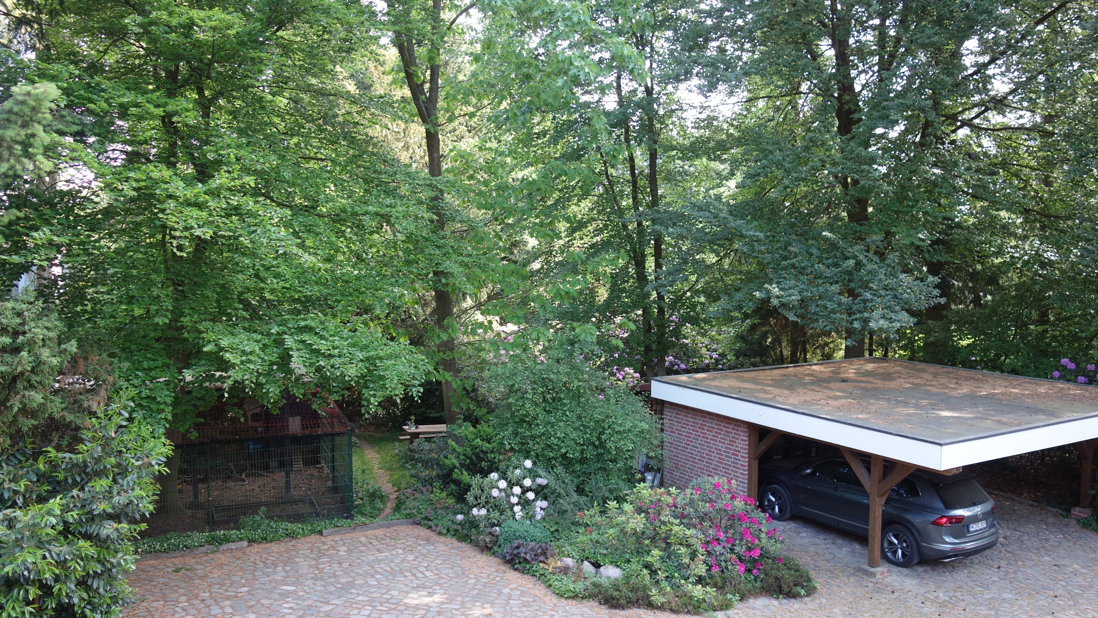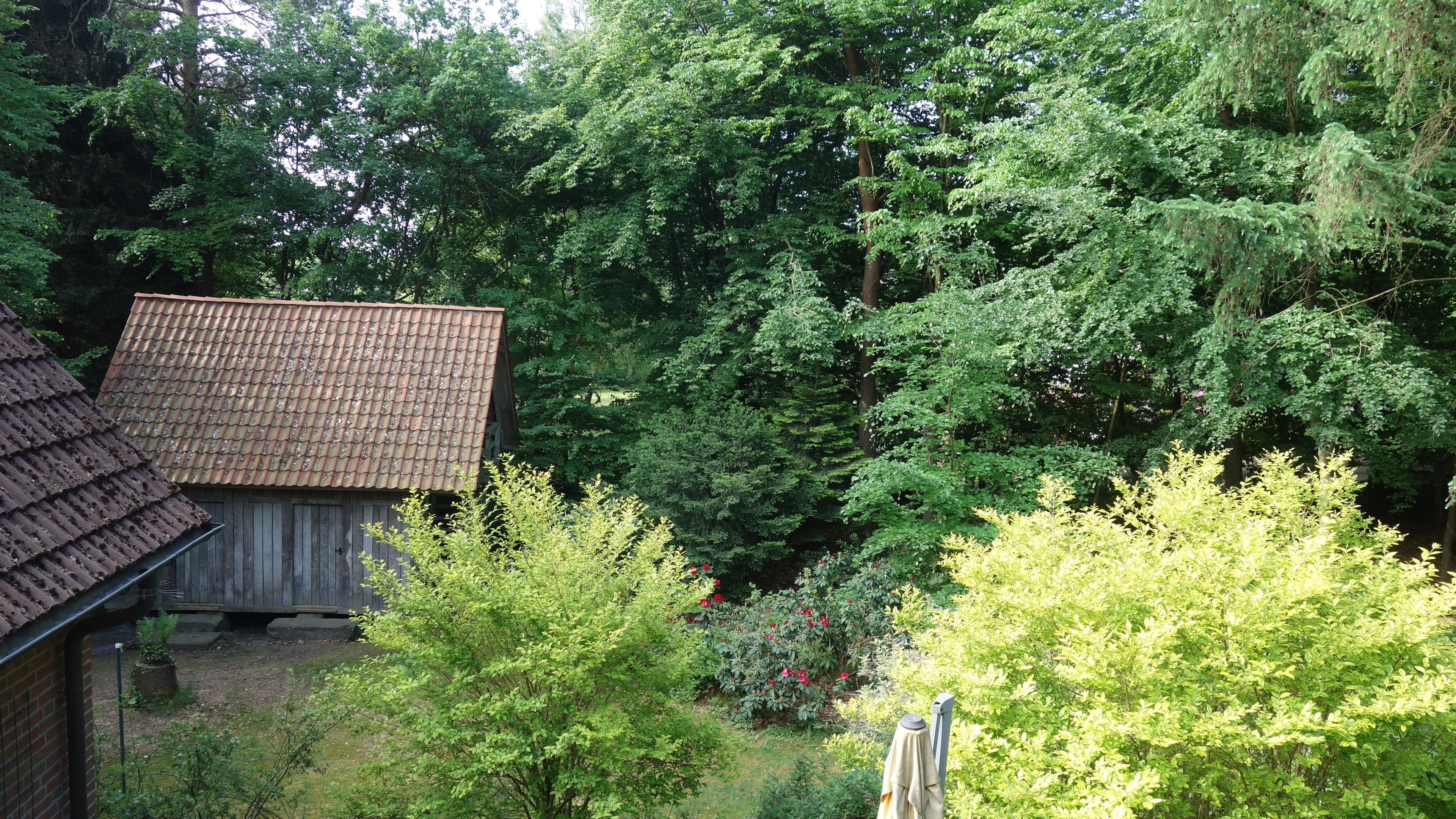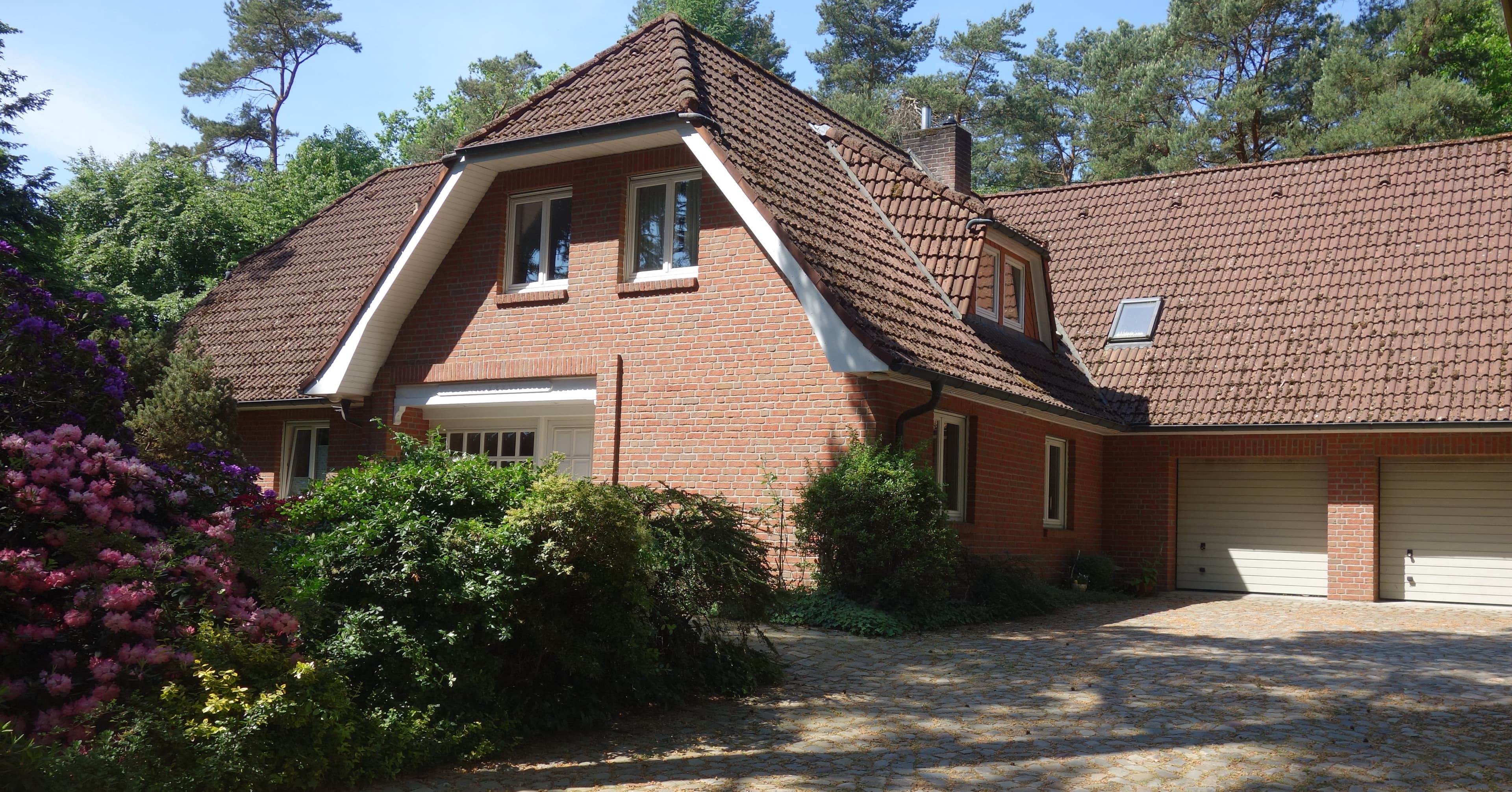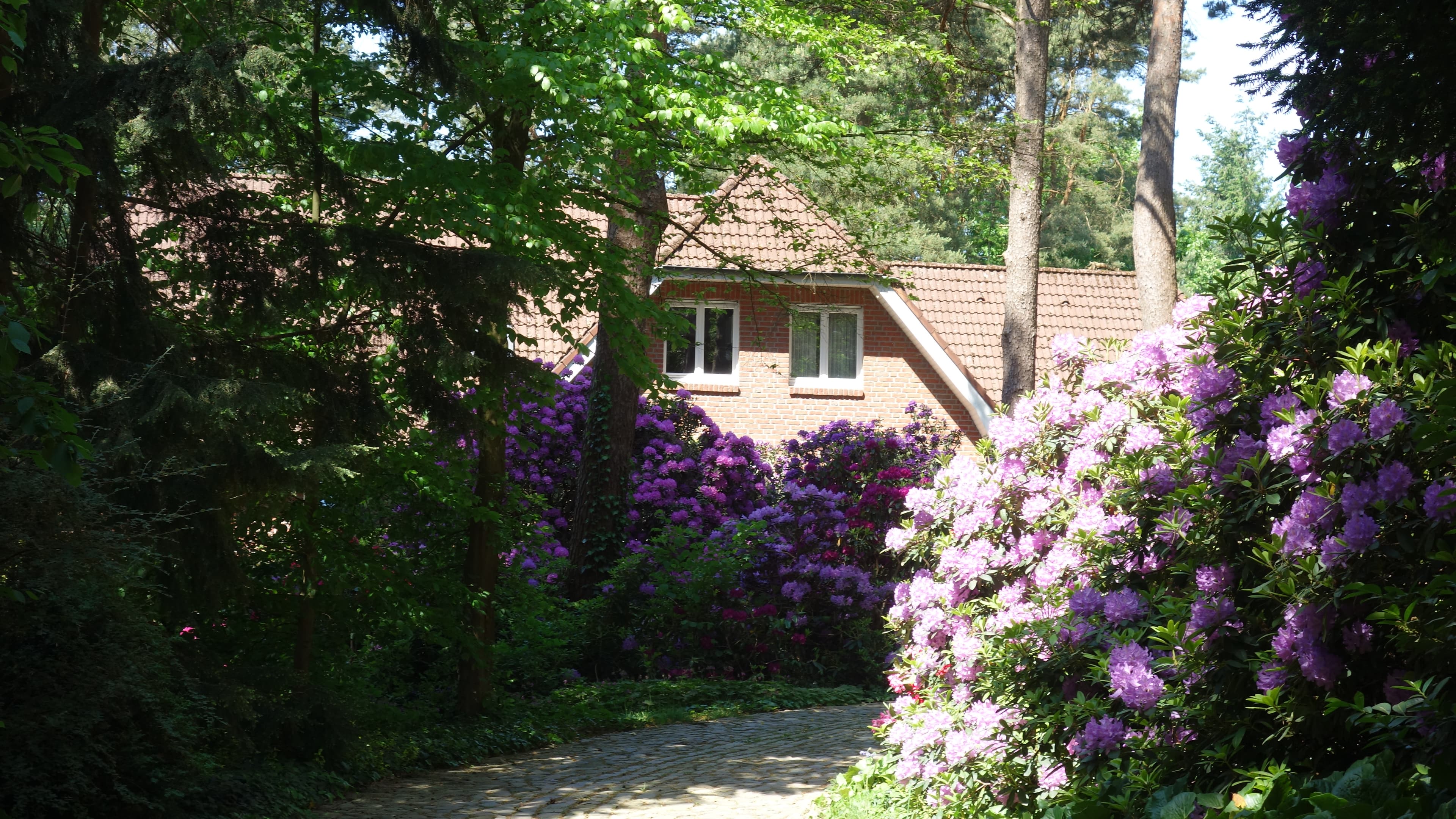 Zentral und ruhig (etwa 1 km vom Ortskern Bispingens entfernt) auf einem parkähnlichen Grundstück (ca. 5000 qm) mit altem Kiefernbestand.
