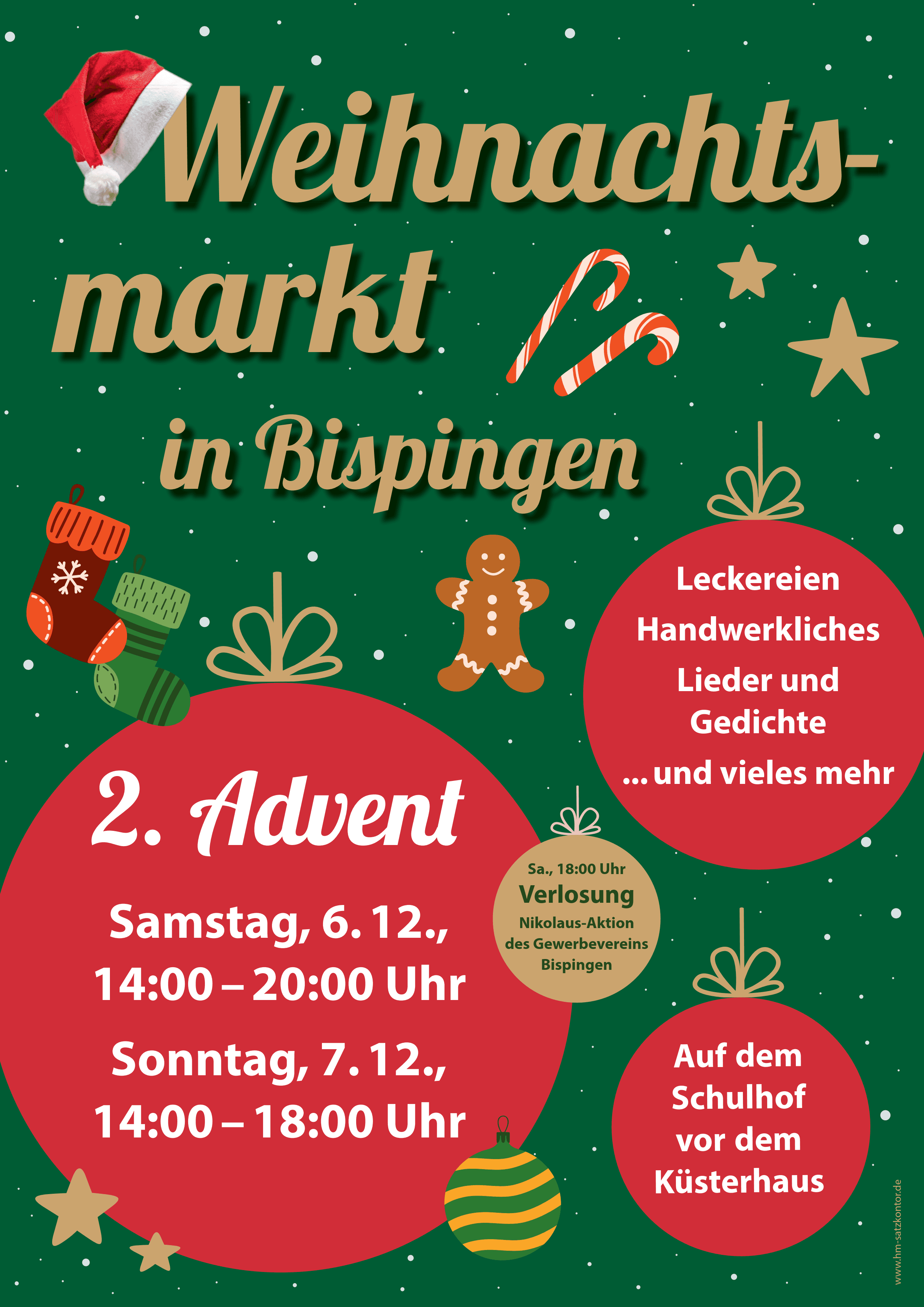 Organisiert wird der Markt vom Gewerbeverein Bispingen und der Grund- und Oberschule mit Unterstützung der Gemeinde Bispingen. Zahlreiche Kunsthandwerksstände präsentieren ihre Arbeiten und laden zum Stöbern ein. Die Schüler*innen bereichern das weihnachtliche Treiben mit eigenen Aufführungen und Verkaufsständen.