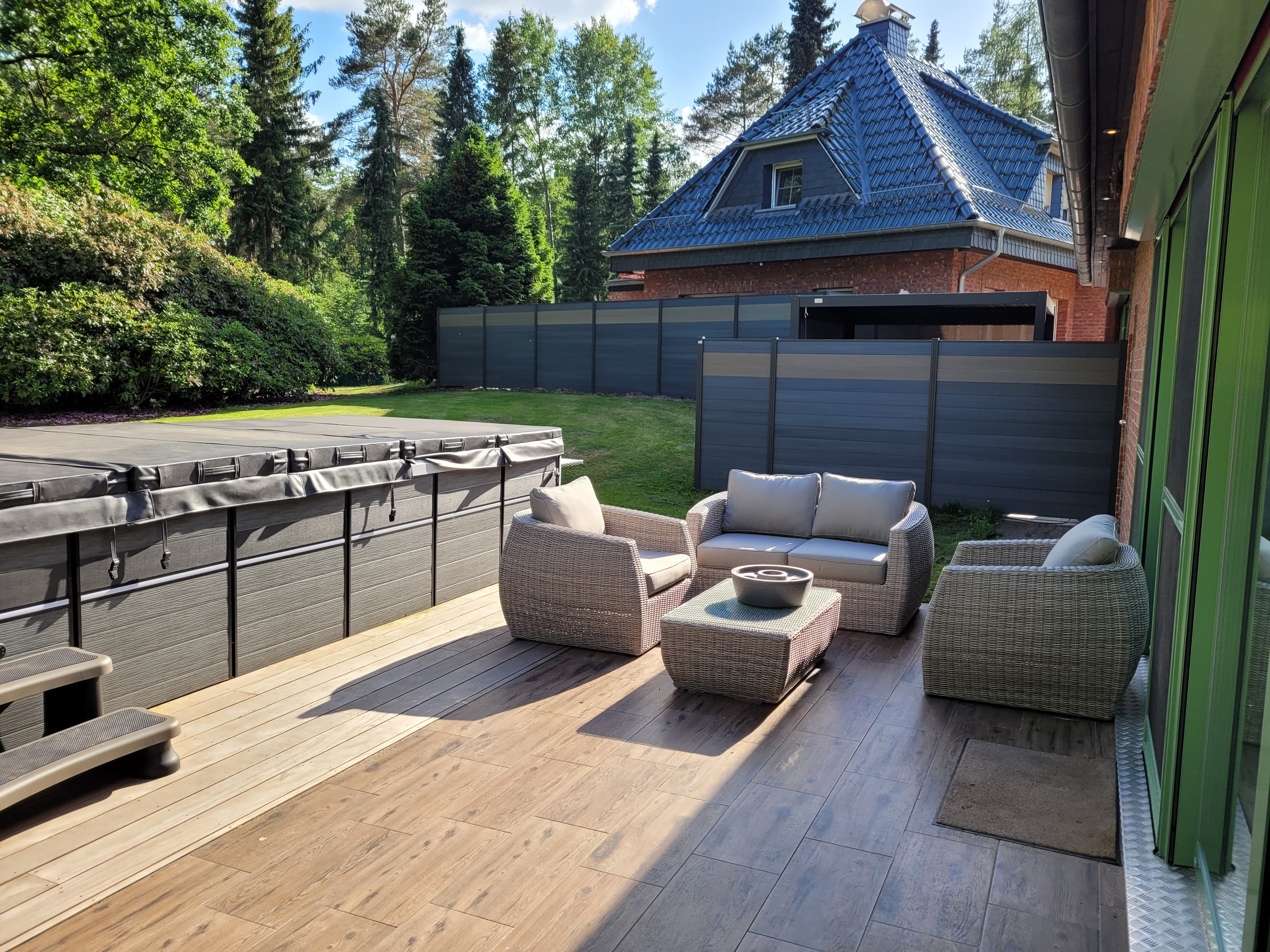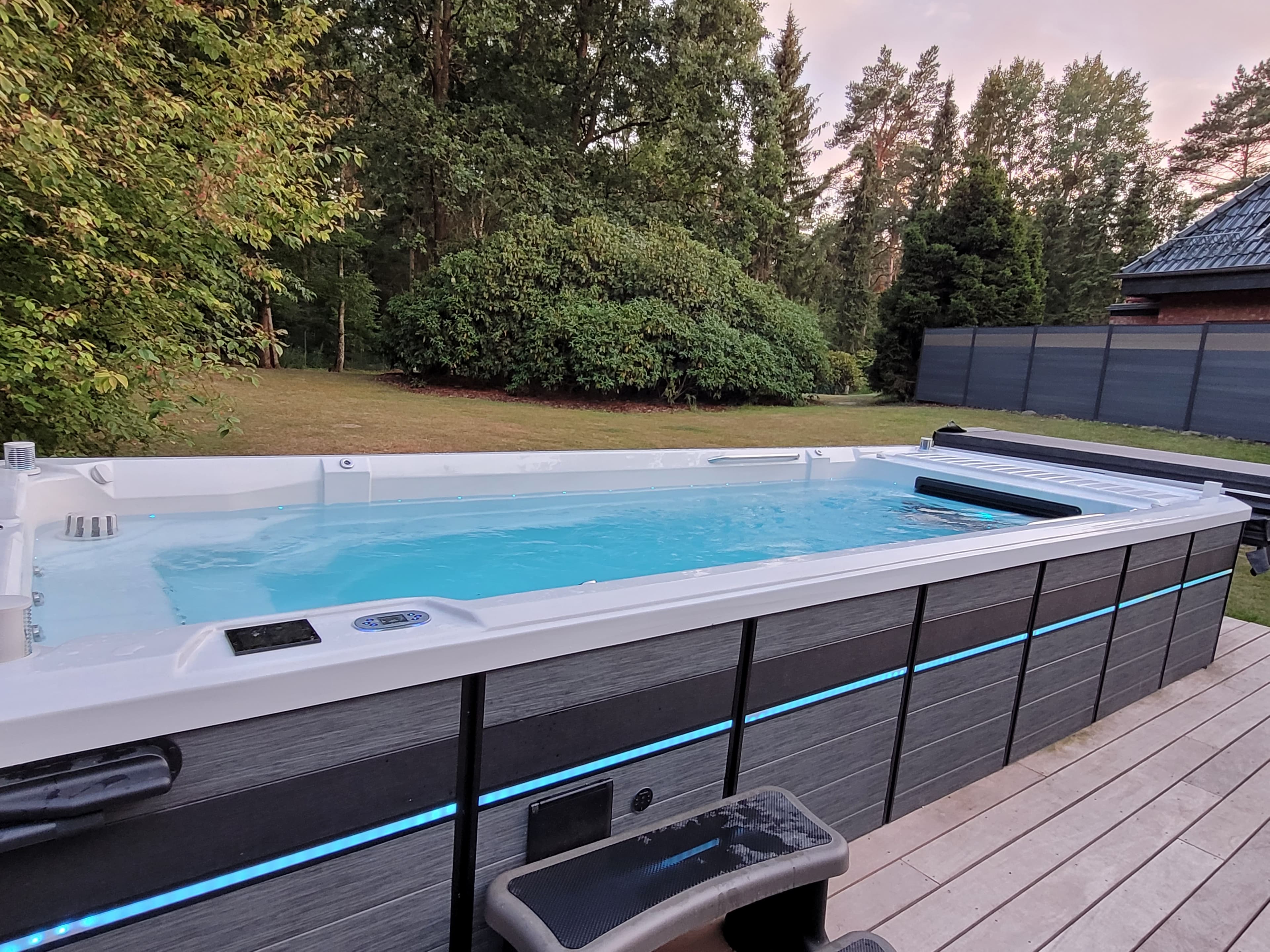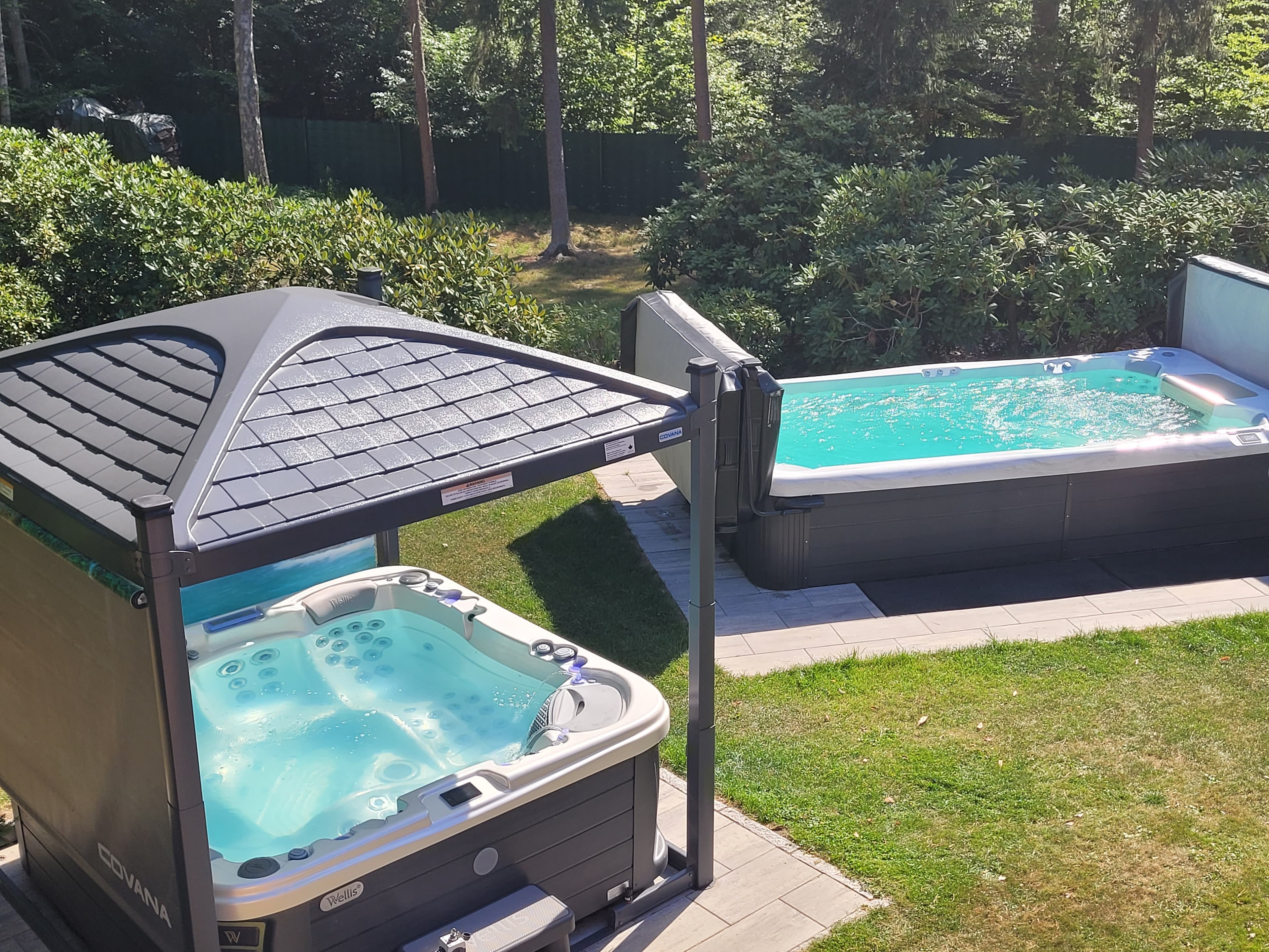 Jede Wohneinheit ist mit einem privaten und ganzjährig beheiztem Luxus Whirlpool ausgestattet. Der Bungalow und das Haus haben zusätzlich einen privaten Schwimm-Spa mit Gegenstromanlage der als Schwimm-Up dazu gebucht werden kann.