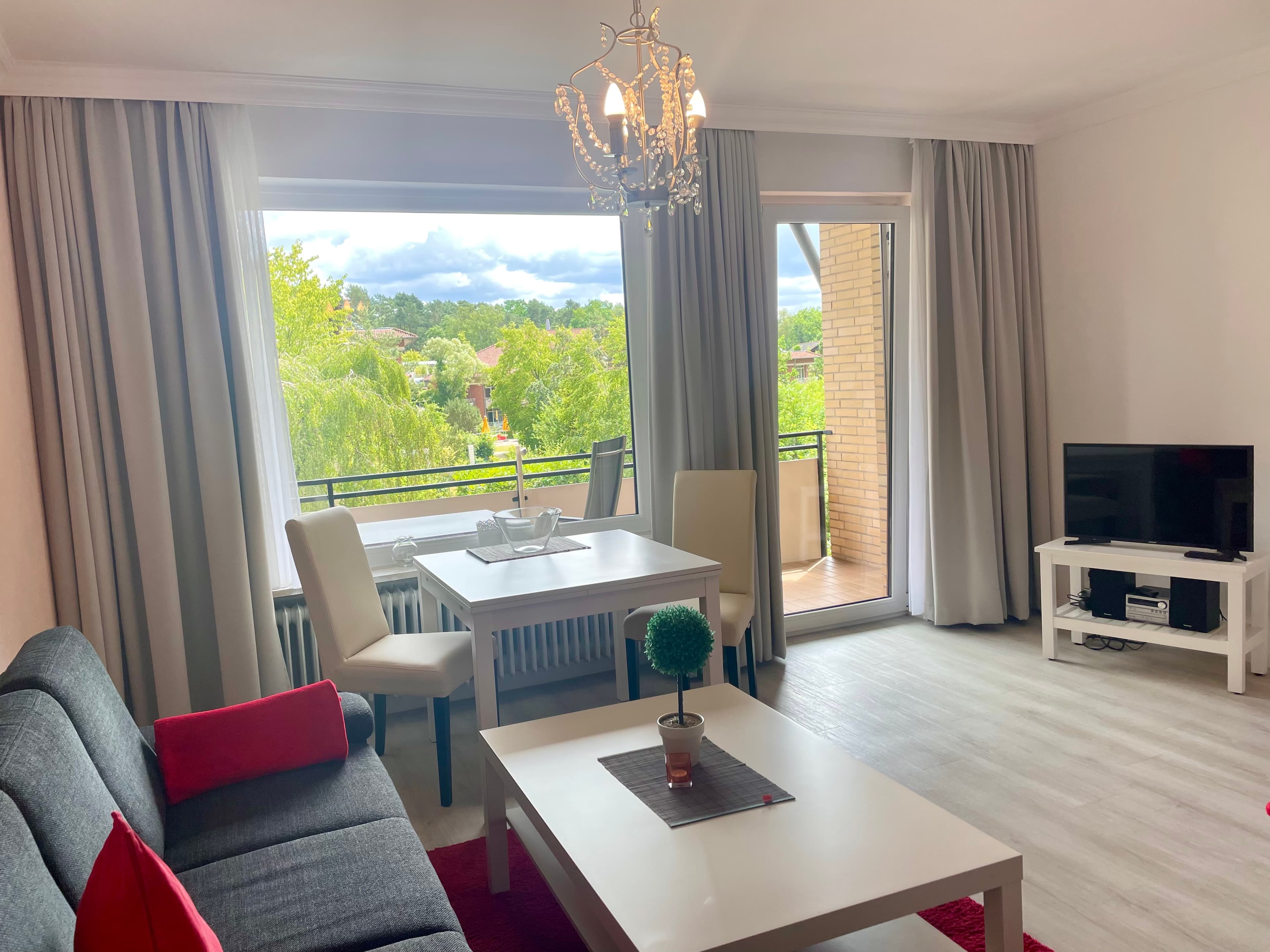 Ihre moderne Ferienwohnung in der Lüneburger Heide. Die Wohnfläche von 45 qm beinhaltet einen kleinen Flur. Von dort gelangen Sie in die Küche, in das Badezimmer mit Dusche. (Handtücher vorhanden) in das Wohn-Schlafzimmer. Der Balkon (Loggia) schließt über die gesamte Zimmerbreite an. Balkonmöbel stehen zur Verfügung.